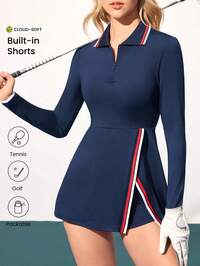 CourtClassCourtClass Koszulka polo z długim rękawem damska, czarno-biała, golfowa, golfowa, koszulki golfowe dla kobiet, stroje golfowe dla kobiet, sukienka tenisowa, strój golfowy z długim rękawem, zestaw spódnic golfowych, sukienka tenisowa, sukienka golfowa modelująca brzuch, spódnica sportowa, tenis golfowy