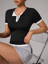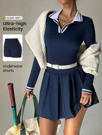 CourtClassCourtClass Damska modna, swobodna, sportowa, do golfa, z blokami kolorów, do tenisa, do biegania, do jogi, z długim rękawem, dopasowana, z dekoltem w serek, do aktywności fizycznej, odpowiednia na wiosnę/jesień