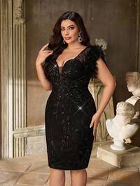 Aureia Elegancka, romantyczna, luksusowa, plisowana, dopasowana, obcisła sukienka midi z aplikacją z cekinów, odpowiednia na imprezę, formalne wydarzenie, bal maturalny, ukończenie szkoły, festiwal muzyczny, ślub, urodziny, Walentynki SHEIN Belle Plus Size Czarna krótka sukienka koktajlowa z dekoltem w serek, błyszcząca, asymetryczna, elegancka, balowa, półformalna, na wesele, na urodziny, ukończenie szkoły, kolację, bal maturalny #5 Bestsellery