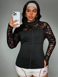 CatchHaloKurtka sportowa w dużym rozmiarze, dopasowana do sylwetki, czarna, z otworem na kciuk, superoddychająca, zapinana na całej długości na zamek błyskawiczny, wyszczuplająca, swoboda ruchów, odpowiednia na fitness jesienią/zimą, bieganie, odzież codzienną