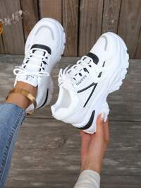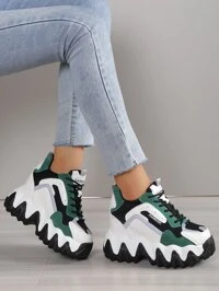 Nowe buty damskie na platformie i grubym koturnie, podwyższona wysokość, uniwersalne, oddychające, grube trampki damskie, skórzane, patchworkowe, modne, spersonalizowane buty studenckie, eleganckie, damskie buty typu mule w stylu Street Snap, stylowe, sportowe trampki damskie #2 Bestsellery