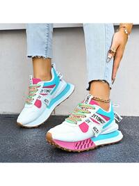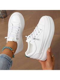 Clunky SneakerDamskie trampki na platformie i koturnie, białe, codzienne buty na wysokim obcasie, superlekkie i wygodne, sznurowane, z okrągłym noskiem, z oddychającej siateczki, odpowiednie na co dzień, do ćwiczeń, do biura, na randki - wzrost o 7 cm