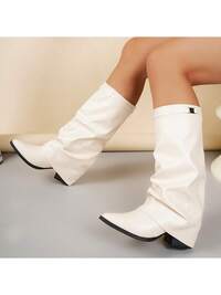 Damskie, szerokie, wygodne buty z noskiem w szpic, szeroka cholewka, prosta rurka, uniwersalne, modne, zapinane na klamrę, buty na grubym obcasie, wiosna/jesień, buty w stylu western