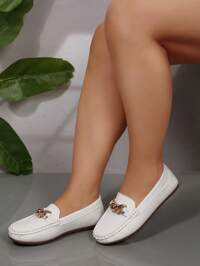 SHUZIASzerokie, nowe, wiosenne, damskie, płaskie, wsuwane mokasyny z kryształkami i łańcuszkiem, białe, miękkie, skórzane, płaskie, wygodne, eleganckie, damskie buty #1 Bestsellery