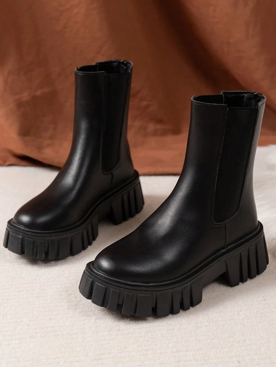 Damskie i wygodne buty, damskie buty typu chelsea z grubą podeszwą i okrągłym noskiem, zapinane na zamek błyskawiczny z tyłu, pasujące do jesiennych ubrań, modne bluzy z kapturem, uniwersalne czarne buty, buty damskie