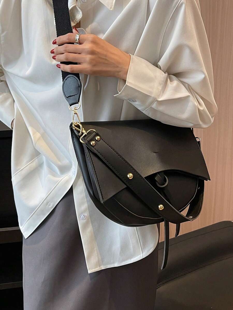 Damska, nowa, jednokolorowa, miękka, skórzana, modna, swobodna, regulowana torba na ramię z PU, lekka, listonoszka
