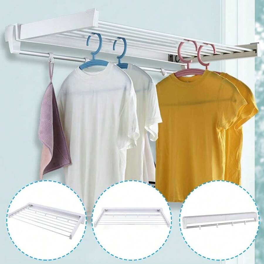 YUNRUX Rozkładany, składany wieszak na ubrania, suszarka do ubrań montowana na ścianie, wykonana z wysokiej jakości aluminium, do użytku wewnątrz i na zewnątrz, do sypialni, łazienek, pralni, garaży, tarasów i balkonów, kolor biały