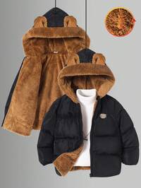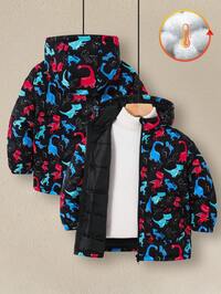 CozyroamerSHEIN Kurtka dla chłopca, uniwersalna, wygodna, z nadrukiem dinozaura, z kapturem, luźna, gruba, ocieplana, średniej długości, odpowiednia do szkoły, ogrodu, na plażę, na urodziny, na wiosnę, lato, jesień i zimę