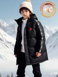 Leap CrewSHEIN Leap Crew 1 szt. Dwa sposoby noszenia jednego elementu garderoby dla młodych chłopców, swobodna, codzienna, przytulna, ciepła, czarna i kratkowana, pikowana kurtka z kapturem, ciepła kurtka, pikowany płaszcz z nadrukiem dinozaura, odpowiednia na wyjścia, powrót do szkoły, urodziny, Halloween, Boże Narodzenie, codzienne spotkania, sezony jesienne i zimowe Kurtka dziecięca/chłopska, codzienna, uniwersalna, wygodna, dzianinowa, z dzianinową wstążką i metką, z kapturem, luźnym krojem, z długim rękawem, tkana, gruba, pikowana, odpowiednia do dojazdów do pracy, szkoły, na co dzień, w podróży, do sportu, na jesień/zimę