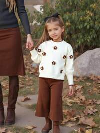 JoyKnitKomplet swetrów dla dziewczynek, sweter + proste spodnie, minimalistyczny biały, dopasowany, wygodny, miękki, w stylu Y2K, odpowiedni na jesień/zimę, do szkoły, do domu, na wakacje, na Boże Narodzenie, Halloween, imprezę świąteczną, noworoczne ubrania dla dziewczynek, jesienne i zimowe ubrania w stylu preppy dla dzieci