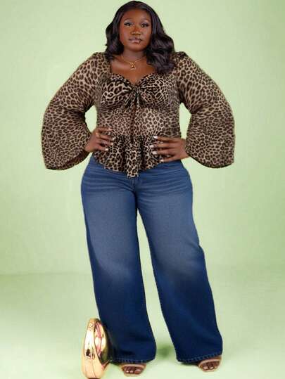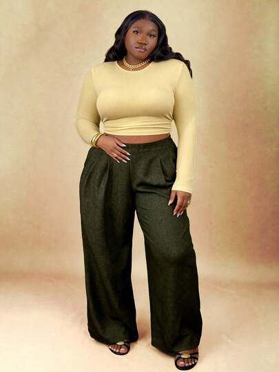 Hourglow Eleganckie body w jednolitym kolorze z rękawami typu lampion w dużym rozmiarze/Jesień/Zima