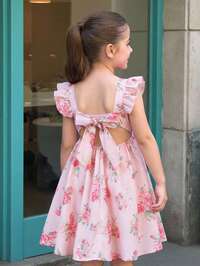 Emery Rose KidsEmery Rose Kids Emery Rose Kids Sukienka dla młodej dziewczyny, tkana, z drobnymi kwiatowymi zdobieniami, kwadratowym dekoltem, falbanką w talii i kokardą z tyłu, swobodna, słodka, imprezowa, na imprezy, powrót do szkoły, kobieca elegancja, francuska elegancja, styl księżniczki, sezon ślubny, spotkania urodzinowe, drobne kwiatki, róża, walentynki, sukienka dla dziewczynki sypiącej kwiaty, letnie wakacje na plaży, mama, córka i siostry w pasującym stylu, pasujące rodzinne wakacje, święta, styl wiejski.