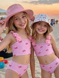 w Różowy Stroje plażowe dla młodych dziewcząt