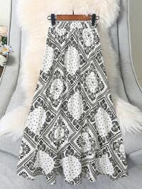 Spódnica damska w dużym rozmiarze z nadrukiem paisley i elastyczną talią w kolorze białym na lato
